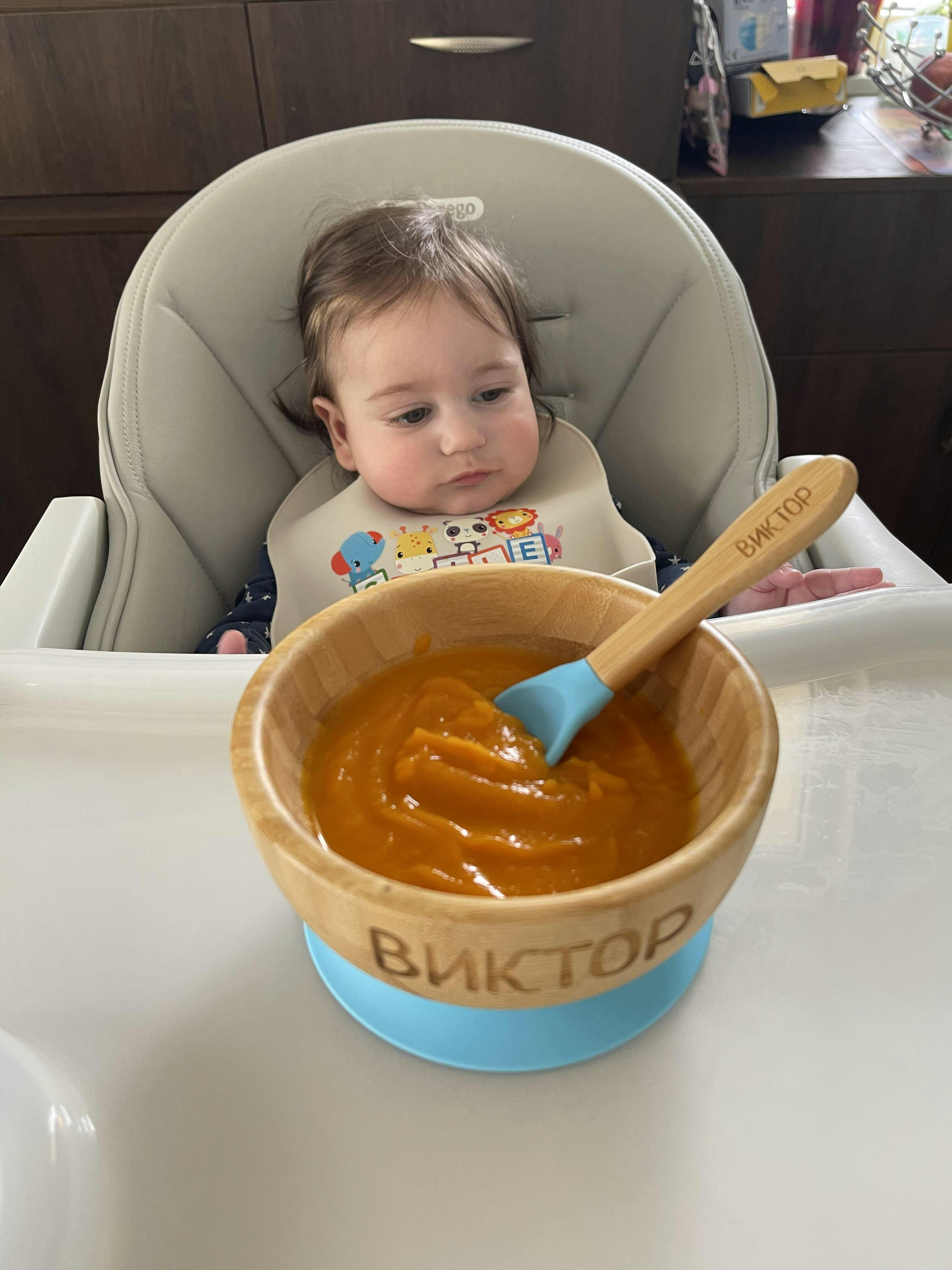 Лъжичката е съчетание от бамбука, използван за направата на купичката, и силикона, използван за вакуумния пръстен. Мекият накрайник на лъжичката има за цел да защити нежните венци на детето в случаите, когато то инстинктивно захапва, а все още няма зъбки.