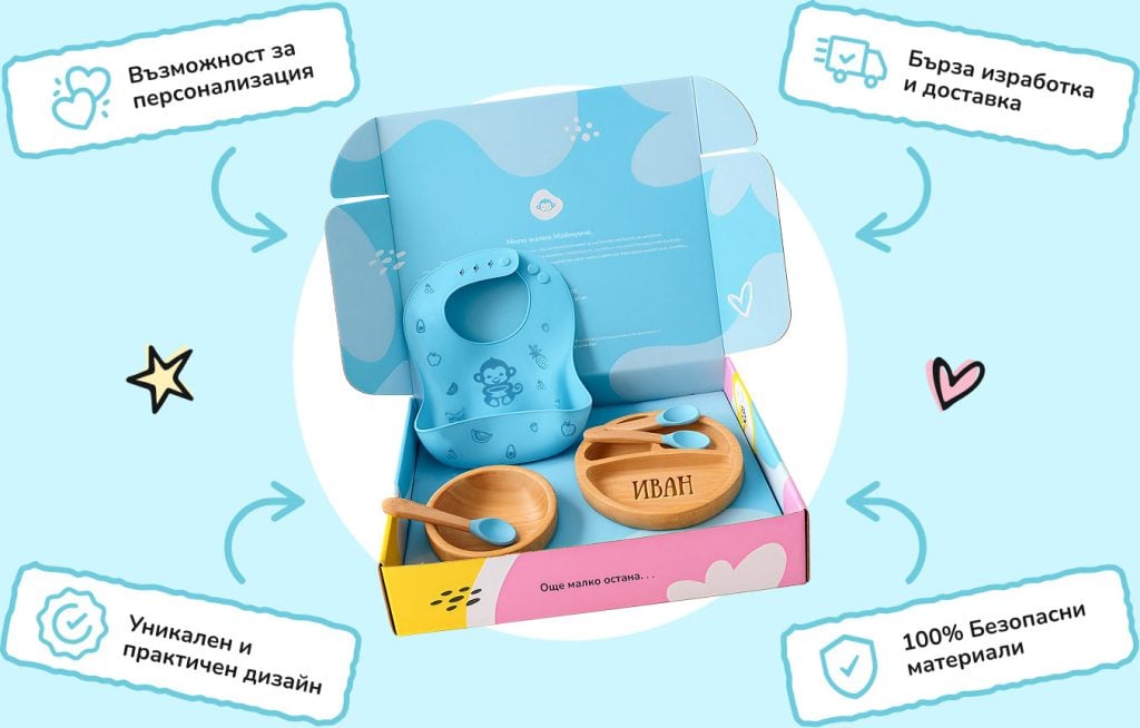 Виличката и лъжичката за захранване не се гравират, поради хигиенни причини.