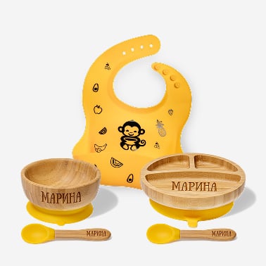 Лъжичките които са включени в комплекта с купичка и чинийка, могат да бъдат гравирани, ако изберете опцията за гравиране при завършване на поръчката (под полето за адрес за доставка).