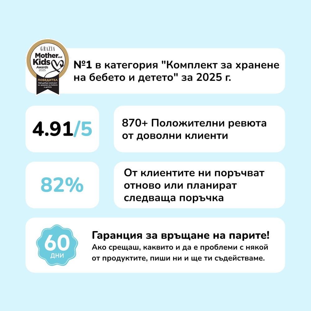 Всичко, което предлагаме, е безопасно, качествено и нежно - създадено с мисъл за малките човечета. Ако не бихме го използвали за собствените си деца, то не оставяме и никое друго дете да го ползва. Ето защо с покупката си от MyMunche се възползваш от 60-дневна гаранция.