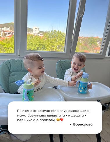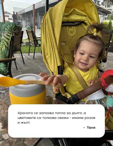 Вакуумното дъно на купичката и чинийката 'залепва' върху масичката към столчето за хранене на детето.
