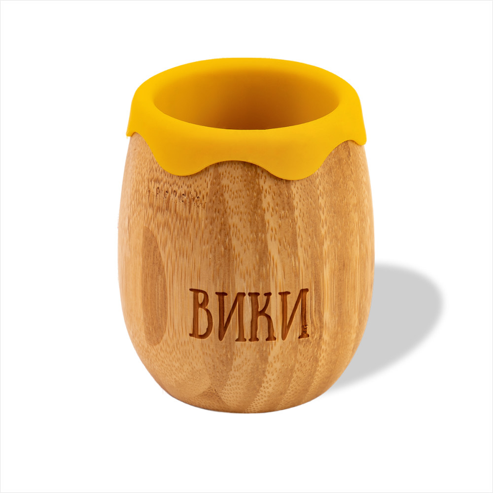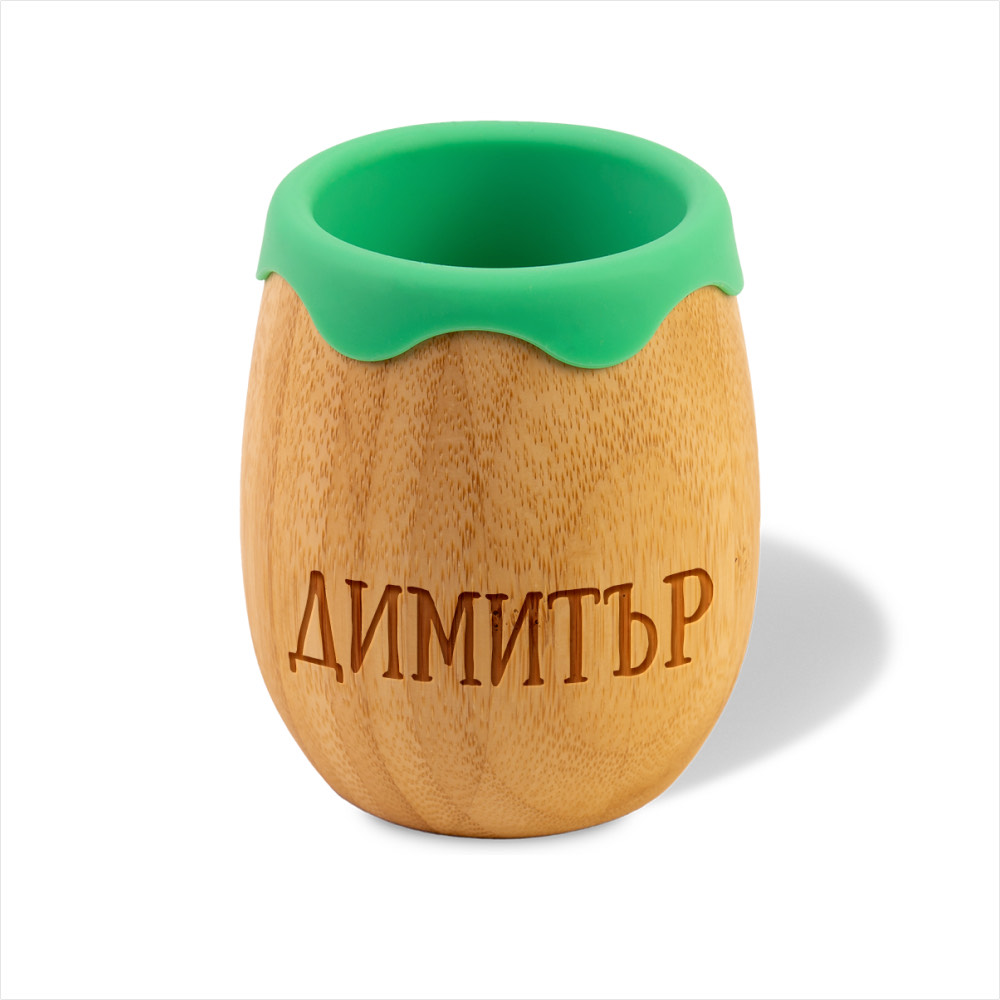 - Бамбукова чашка, обвита отвътре и отвън по ръба, със силикон