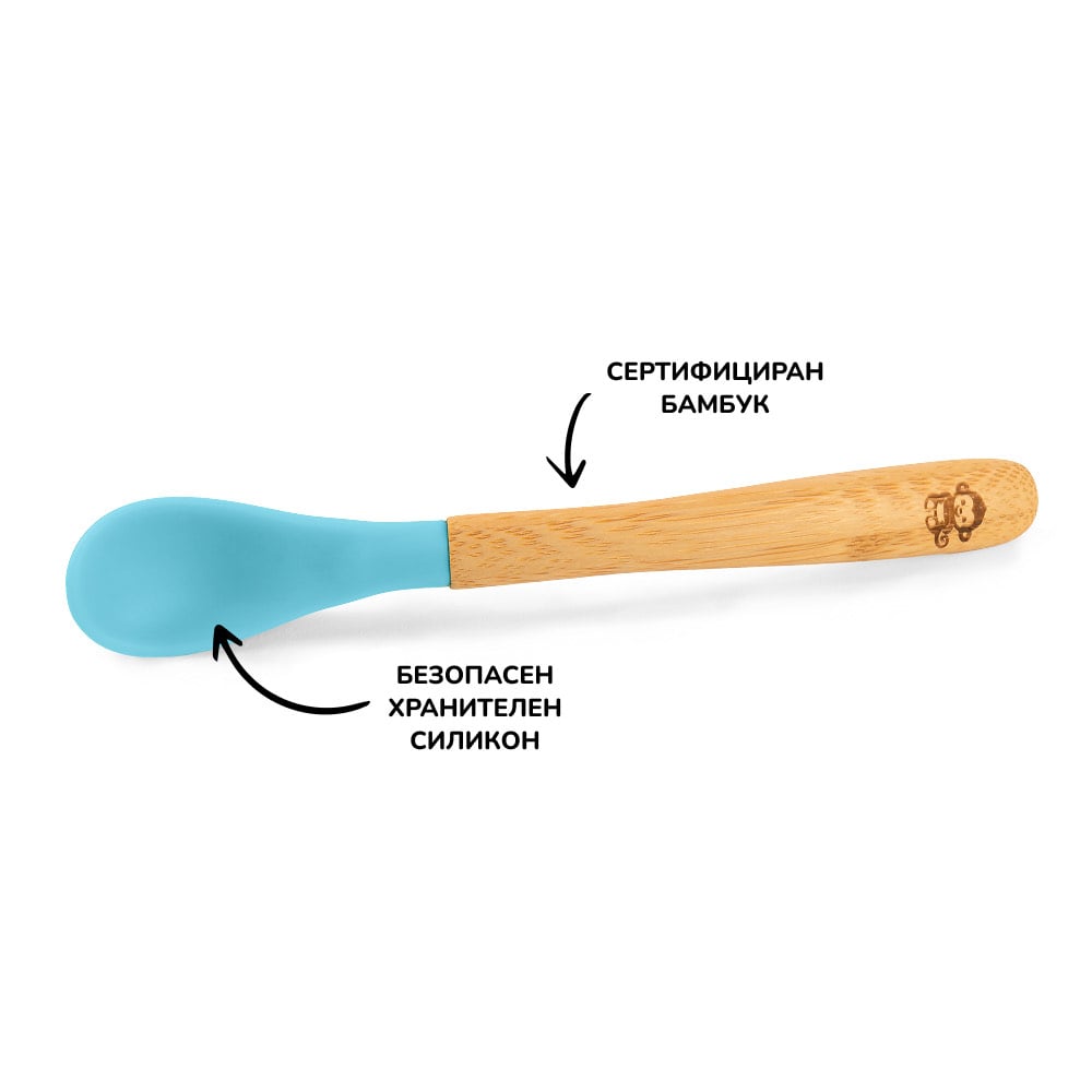 Лъжичката е съчетание от бамбука, използван за направата на купичката, и силикона, използван за вакуумния пръстен. Мекият накрайник на лъжичката има за цел да защити нежните венци на детето в случаите, когато то инстинктивно захапва, а все още няма зъбки.